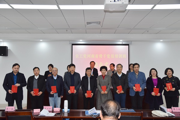 2018年12月20日至23日,农工党河南省委会在河南省社会主义学院举办全省骨干党员培训班。省委会主委高体健出席开班式并讲党课。省委会专职副主委花亚伟讲党课并作总结讲话,省委会副主委黄红霞、孙晓红、雷雪芹、张小安分别出席开班式和结班式。