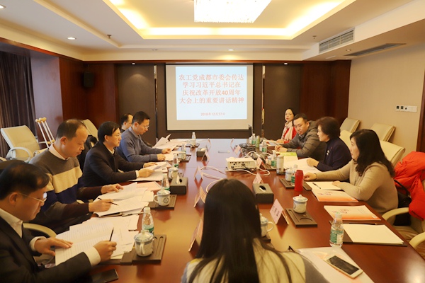 2018年12月27日,农工党成都市委会召开主委(扩大)会议,学习贯彻习近平总书记在庆祝改革开放40周年大会上的重要讲话精神。市委会主委甘华田主持会议,市委会副主委池雷霆、魏彦玉、陆志明、胡伟峰,秘书长曾琪出席会议。
