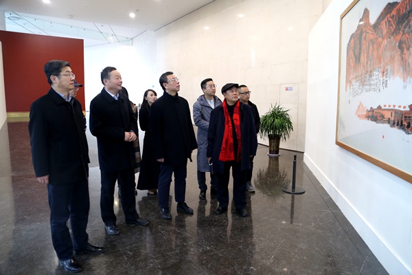 2019年2月26日,农工党山西省委会专职副主委、省总工会副主席张李锁,农工党山西省委会专职副主委、秘书长、组织部长杜宏瑞在太原美术馆参观了山西前进画院副院长、农工党中央书画院理事裴希敏参展的“雄伟太行山大型国画作品展”。