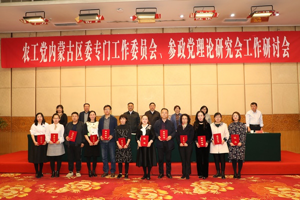 区委会表彰了2018年度优秀调查研究报告、优秀提案、集体提案、大会发言、优秀社情民意信息,为农工党中央参政党理论研究优秀论文奖获得者颁发了荣誉证书,宣布成立了中国农工民主党内蒙古自治区第七届委员会青年工作委员会。