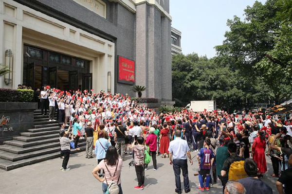 “我和我的祖国,一刻也不能分割,无论我走到哪里,都流出一首赞歌……”2019年5月25日,中国民主党派历史陈列馆门口,人群鼎沸,悠扬的歌声在空中回荡,来自中共重庆市委统战部机关、市级各民主党派、工商联、无党派和社会新阶层代表人士等在此开展重庆统战系统庆祝中华人民共和国成立70周年暨“礼赞祖国、同心追梦”的快闪活动。农工党重庆市委会积极参加该活动。
