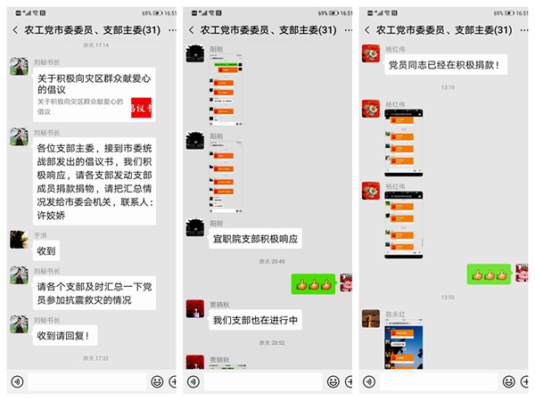 农工党宜宾市委会机关利用微信向全市基层组织和全体党员发出倡议,为灾区群众捐款献爱心