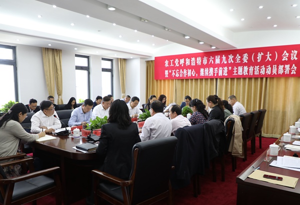 2019年9月30日,农工党呼和浩特市第六届委员会第九次全体(扩大)会议暨“不忘合作初心,继续携手前进”主题教育活动动员部署会召开。农工党内蒙古区委会主委云治厚出席并讲话。呼和浩特市委会主委鲁剑钧,副主委其木格、岱沁、魏建颖出席会议。会议由岱沁主持。中共市委统战部党派科副科长赵焰应邀出席会议。