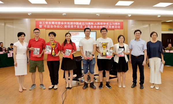 本次知识竞赛活动是农工党东莞市委会以庆祝新中国成立70周年、人民政协成立70周年、“不忘合作初心,继续携手前进”为主题,精心策划的系列教育活动。为了充分调动全体党员参加竞赛的积极性,取得主题教育活动实效,赛前为全体党员提供了127条学习资料,以个人网上参赛得分计入支部集体总分的形式,组织了有250多人参加的为期一周的第一阶段竞赛。在此基础上,进行第二阶段现场竞赛。同时在竞赛题目、竞赛形式、互动环节上认真考量,力求将学习教育赋予生动活泼的形式。此次竞赛活动是市委会探索开展政治学习教育的一次生动实践。