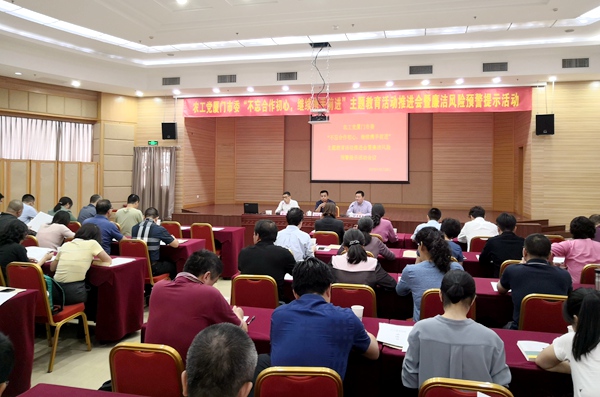 2019年10月26日下午,农工党厦门市委会在团结大厦召开“不忘合作初心,继续携手前进”主题教育活动推进会暨廉洁风险预警提示活动。市委会专职副主委陈育斌、黄格成,秘书长汤序俭,监督委员会主任巫斌参加活动。