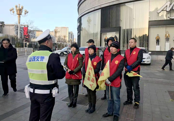 2019年11月13日,农工党太原市委会组织机关工作人员参加文明交通志愿服务活动。