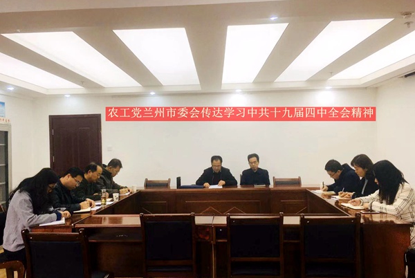 2019年11月19日,农工党兰州市委会机关召开中共十九届四中全会精神专题学习会。市委会副主委安永学,秘书长王波参加学习。