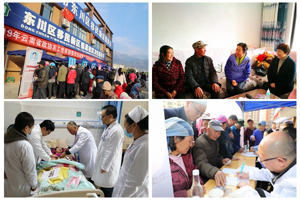 活动当天,农工界别政协委员走访慰问了东川对门山10户搬迁贫困户,省市两级医院的10位农工党党员知名专家开展了义诊、带教查房及学术讲座活动,昆明市民族歌舞剧院在对门山易地扶贫搬迁点组织了一场精彩的文艺演出。云南省红十字会慰问易地扶贫搬迁安置点困难群众,分发了价值10万元的家庭包(生活物资);云南东骏药业(集团)有限公司向东川区铜源社区卫生服务中心捐赠价值5万元的药品。