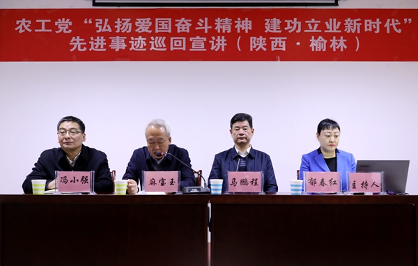 2019年12月9日至11日,巡回宣讲团在省委会专职副主委马鹏程的带领下,赴延安、榆林开展“弘扬爱国奋斗精神、建功立业新时代”先进事迹巡回宣讲。农工党延安市委会主委吴栋,榆林市人大副主任、市委会主委麻宝玉出席活动并致欢迎词。省委会宣传部部长郁春红主持宣讲活动。
