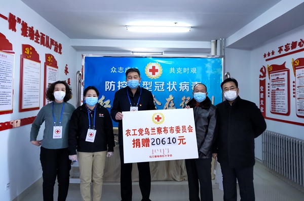 疫情无情人有情。新型冠状病毒肺炎疫情发生以来,农工党乌兰察布市委会十分关注疫情发展动态。面对严峻形势,2020年2月1日,农工党乌兰察布市委会发起捐款活动支持新型冠状病毒肺炎疫情防控工作。2月3日上午,农工党乌兰察布市委会副主委师宁、魏山虎代表62名农工党党员向乌兰察布市红十字会捐赠了第一批20610元捐款,农工党乌兰察布集宁区总支部向集宁区红十字会捐款2000元,1名农工党党员直接向红十字会捐款1000元。目前捐款还在进行中。