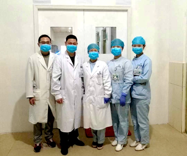 李雪松(左四)和惠州市第三人民医院感染科医护人员一起互相加油打气