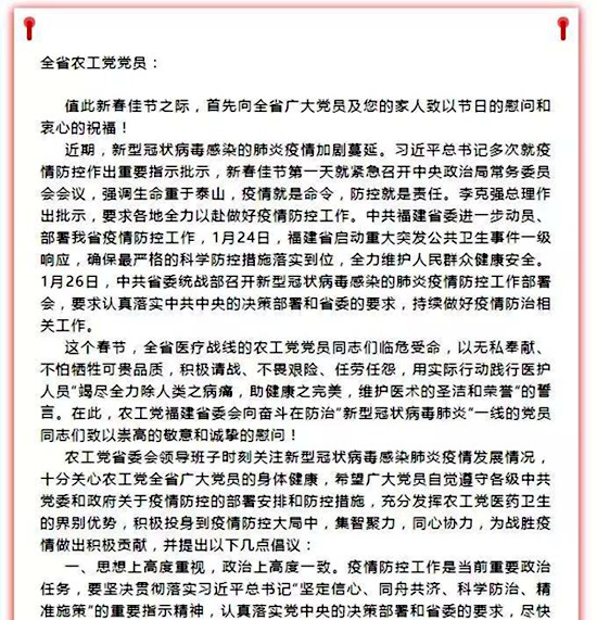 我们坚信,在中共中央的坚强领导下,在全社会的共同努力下,坚定信心、同舟共济、科学防治、精准施策,一定能够打赢疫情防控阻击战!(农工党福建省委会)