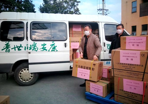 2月5日-6日,农工党党员、湖南普瑞康医药有限公司李光焰分别向湖南省中医药大学第一附属医院、长沙市一医院、韭菜园街道桐荫里社区捐赠一批医用外科手套、医用酒精、84消毒液、板蓝根颗粒、医用检查手套等防疫物资,价值2.8万元。