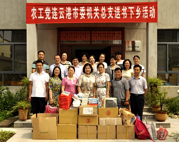 2015年7月25日,农工党连云港市委会机关总支在东海县开展送书下乡活动。农工党连云港市委会机关总支委主委焦统霞、市委会办公室主任冯怀金,机关总支部分党员,农工党东海县支部委员会副主委魏忠田等参加活动。