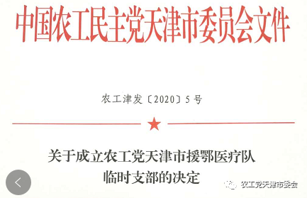 医者秉仁爱之心,尽济世救民之责,无畏无悔。面对来势汹汹的新冠肺炎疫情,一批又一批医务工作者挺身而出,勇敢地与病魔鏖战,在人民群众身前筑起安全防线。2020年1月28日以来,天津已派出多批医疗队支援湖北,队伍中有9名农工党党员的身影,2月14日20点,临时支部成立大会以视频会议形式召开。