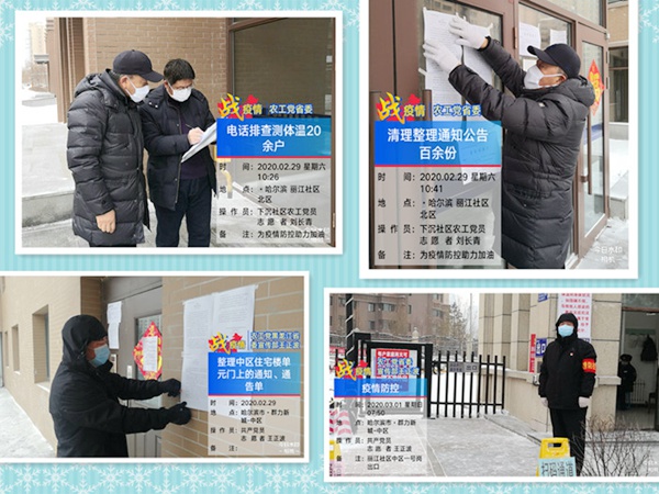 2020年2月24日以来,省委会驻会副主委刘长青、宣传部部长王正波下沉所居住的哈尔滨市道里区工农街道丽江社区参加疫情防控工作。