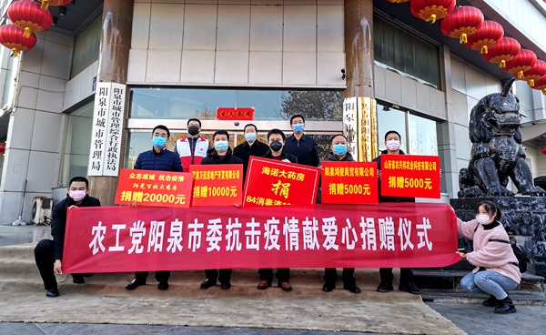 疫情无情,农工有爱。2020年2月9日上午,在阳泉市抗击疫情进入关键时期,农工党阳泉市委会组织党员企业举办抗击疫情献爱心捐赠活动,再次掀起献爱心高潮,倾情助力我市疫情防控。