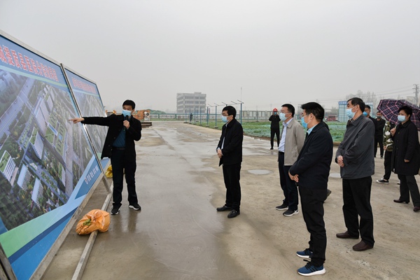 花亚伟一行还到唐河县人民医院就疫情防控及医疗工作进行实地调研,并到该院新院址建设工地进行实地考察。唐河县人民医院院长李富旺详细介绍了在疫情防控方面所采取的具体措施及目前医院运行情况。花亚伟对唐河县人民医院新院址的建设提出了一些合理化建议,并对该院的发展寄予厚望。