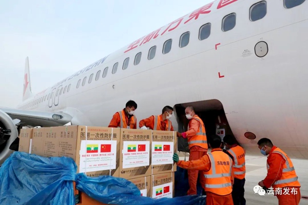出征仪式后,抗疫医疗专家组乘坐东航包机从昆明出发前往缅甸仰光。(农工党云南省委会)