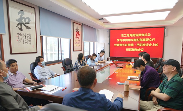 2020年4月27日,农工党湖南省委会机关召开会议组织学习中共中央组织部重要文件,兰香部长在常德、岳阳召开的座谈会上的讲话精神,省委会专职副主委蒋秋桃出席。