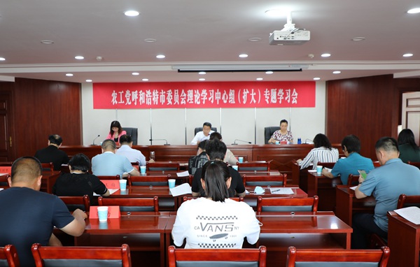 2020年6月15日,农工党呼和浩特市委会召开理论学习中心组(扩大)专题学习会,传达学习习近平总书记在参加十三届全国人大三次会议内蒙古代表团审议时的重要讲话精神和全国两会精神。农工党呼和浩特市委会主委、呼和浩特市人大常委会一级巡视员鲁剑钧主持会议并讲话。