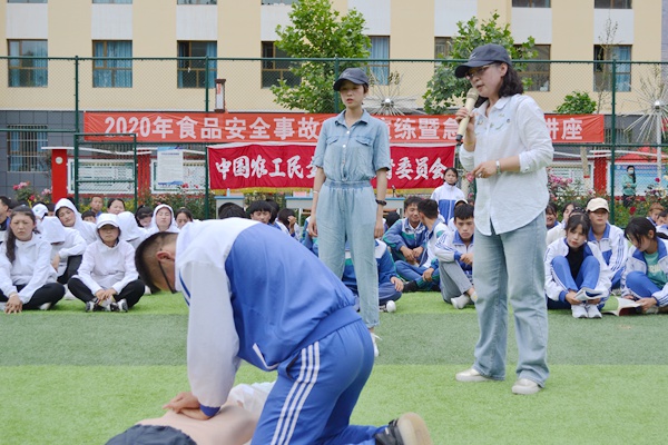 2020年6月19日,农工党青海省委会在海东市循化县职业技术学校开展“健康知识进校园”——“2020年食品安全事故应急演练暨急救常识讲座”活动。