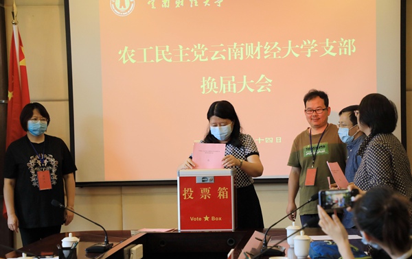 2020年7月14日,农工党云南财经大学支部委员会召开党员大会,选举产生第四届支部委员会主委、委员。农工党云南省委会主委张宽寿、副主委何云葵,中共云南财经大学党委副书记桂正华、统战部部长施仲军出席会议。