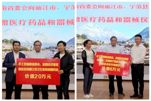会上还举行了捐赠仪式,张灼华代表农工党湖南省委会向丽江市、宁蒗县医疗机构捐赠价值26万元的药品、医疗器械。这些捐赠药品、医疗器械由省直经济基层委员会、省直综合基层委员会二支部提供。