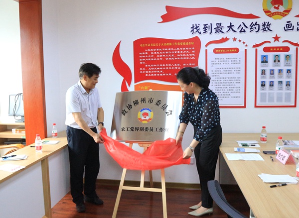 2022年5月27日,农工党柳州市委会举行柳州市政协农工党界别委员工作室暨农工党党员之家揭牌仪式。柳州市政协副主席罗铭、农工党柳州市委会主委胡兰出席揭牌仪式,并共同为委员工作室揭牌。