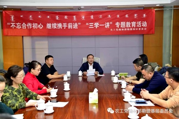 2018年11月29日,农工党锡林郭勒盟基层委员会开展“不忘合作初心 继续携手前进”“三学一讲”专题教育活动。教育活动由副主委巩海军主持,盟委会领导班子成员及各部门、各基层组织负责人、部分骨干党员参加活动。