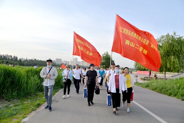 上午7点,120余名党员齐聚赛汗塔拉,迎着夏日的晨光,满怀激情,开启了全程10公里的健步行。