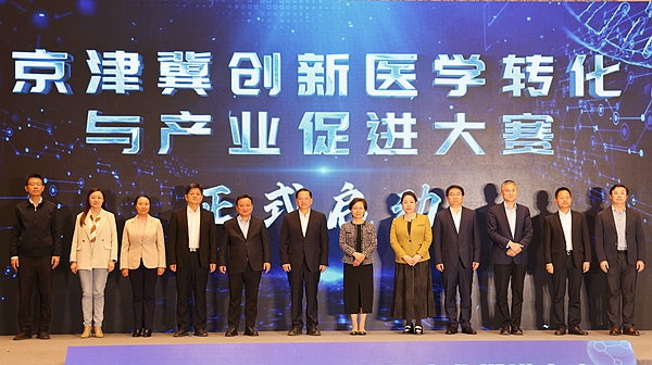 4月10日下午,2025京津冀创新医学转化与产业促进大赛在北京城市副中心通州区启动。中共北京市委统战部副部长、市工商联党组书记严卫群,农工党北京市委会副主委、北京市卫生健康委主任刘俊彩出席并致辞,通州区委副书记、区长郑皓,中国工程院院士、中国医学科学院药物研究院院长蒋建东出席。农工党中央区域协同发展工作委员会主任、北京市委会专职副主委江欣主持启动仪式。