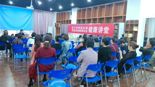 2016520日下午,农工党孝感市孝昌支部联合孝昌县桃源社区举办了“提高居民身体素质,普及健康养生知识”健康讲堂活动。农工党孝昌支部委员、孝昌县第一人民医院康复科副主任刘建清,在桃源社区居民多功能活动室为社区50余位居民上了一堂生动的健康知识讲座。