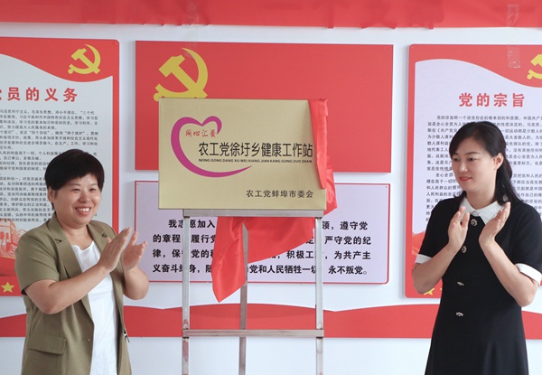 农工党蚌埠市委会专职副主委杨杞、农工党安徽省委会社会服务部有关同志,徐圩乡乡长王岩峰、怀远县卫健委主任耿斌等参加揭牌仪式。(吴剑文)