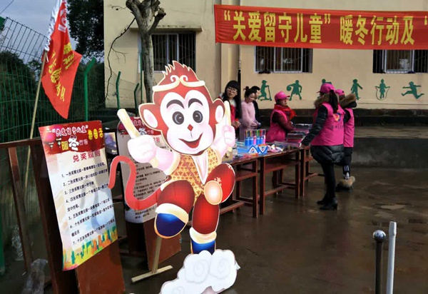 20161216日,农工党泸州市纳溪区支部联合区文化馆开展的“关爱留守儿童暖冬行动”在岩区护国镇大理小学举行,为留守学生送去温暖,传递爱心。
