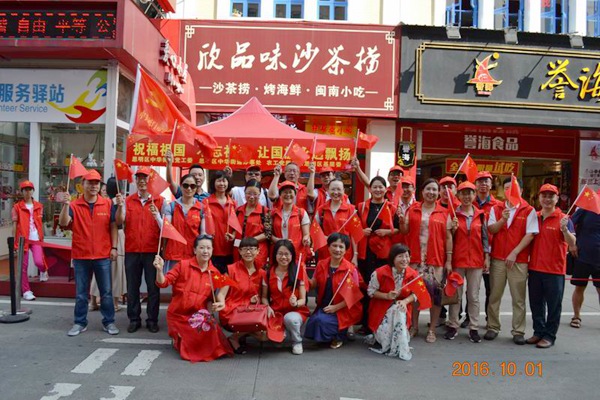 2016101日上午,农工党厦门市思明区基层委、中共厦门市思明区中华街道党工委、中华街道办在中山路联合举办祝福祖国 不忘初心 让国旗永远飘扬国旗免费发放活动。这是由农工党厦门市经济支部倡议发起,农工党思明区基层委与中华街道结对共建的一项活动,迄今已连续举办了十一年。