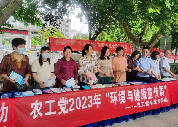 2023年“六五环境日”宣传主题是:建设人与自然和谐共生的现代化。“环境与健康宣传周”是农工党中央特色社会服务活动品牌,农工党淮北市委会以此为契机,向广大市民群众讲解健康绿色生活理念,宣传环保法律法规、家庭保健知识、常见疾病预防等,现场发放了宣传册和宣传单页300余份,引导公众进一步增强全民环保和全民健康意识,为建设“健康淮北”“美丽淮北”贡献农工党力量。