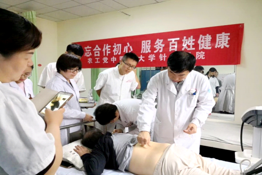 在此次活动中,来自省针灸医院的王维峰主任不仅为患者进行义诊,并免费为患者针灸治疗,同时为“山纺”医院的年轻医师进行了针灸技术示范。我党党员张春华主任医师则以“三高人群该怎么吃”为题给广大居民、患者做了健康讲座;来自山西省特殊教育学校的我党党员王庆梅副主任医师带领该校年轻团员为患者进行免费推拿治疗;来自省社保局的我党党员李文红副主任医师则为患者解答了一些关于医保方面的问题,并对该院青年医师进行了社保、医保的相关教育。活动中,医护人员为社区居民免费进行测血压、做艾灸、拔火罐等诊治。这次义诊义治活动从下午两点半开始直到下午六点半结束,接受义诊义治和参与讲座的患者、居民达七十余人次。