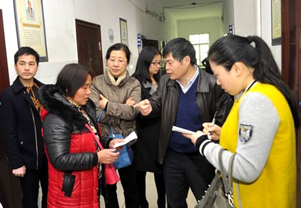 万红梅来到蒋国珍住处,她走到蒋国珍老人身旁,询问他的身体情况。但是,蒋国珍表情迷糊,摇摇头,示意听不见。在身旁照料他的侄女蒋根英大声地用本地方言和蒋国珍重复万红梅的问题。蒋国珍试图回答,但是他嗓子沙哑,吐字不清,大家都无法辨别他在说什么。万红梅见蒋国珍面色苍白、浮肿,先进行简单检查后,决定带老人到医院做一个全面的身体检查。随即驱车将蒋国珍老人和蒋根英接到罗坊镇中心卫生院,院长李小军积极配合,安排医护人员为蒋国珍做了血压、抽血化验、鼻腔等一系列检查。