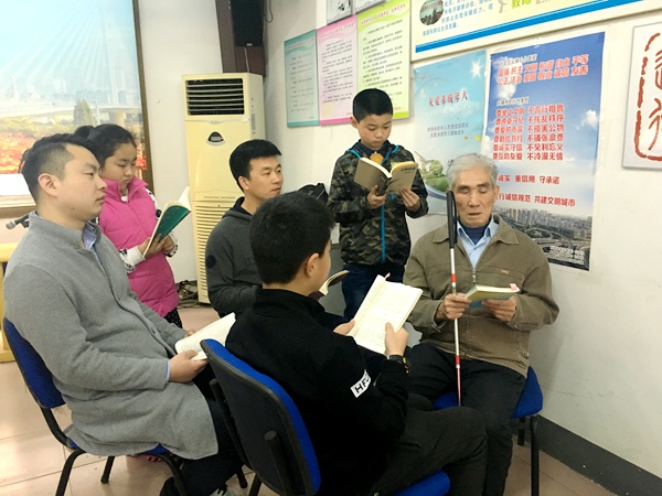 “志愿者党员及孩子们来为我们读书,既带给我们知识,也带给我们快乐,更带给我们温暖。作为盲人,平时只能用手触摸世界,如今你们的声音就像是我的眼,让我们看到了色彩的世界,也体会了社会的温暖,真心地谢谢你们”,盲人宋大叔动情地说着。