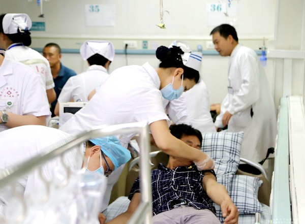 院长赵聪、副院长罗俊以及其他院班子成员迅速抵达急诊科。就在10分钟内,内科、外科、急诊科、五官科、高压氧、放射、护理等相关科室的业务骨干共70余人,悉数到达急诊科。其中,包括了普外科张聃、骨科牟健雄、手术室余红、心内科唐莉、放射科李文波、史智勇和ICU石艳等多名总支党员。他们在医院的统一领导和指挥下,按照应急救治的工作方案和步骤,积极为双流国际机场医疗中心送来的急救伤员提供专业的医疗服务和心理疏导。