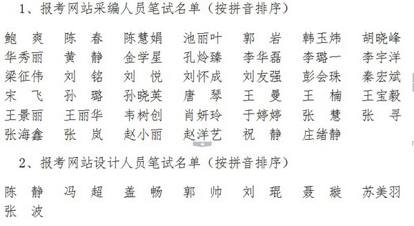 1、报考网站采编人员笔试名单(共41人,名单附后)