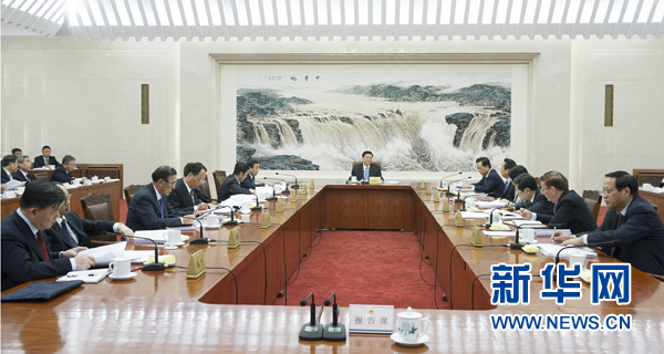 4月14日,十二届全国人大常委会第二十一次委员长会议在北京人民大会堂举行。全国人大常委会委员长张德江主持会议。 新华社记者 黄敬文 摄