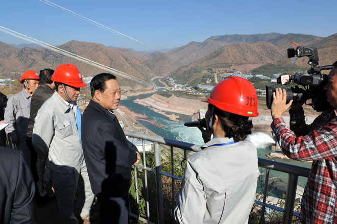2014年11月27日下午,全国政协副主席、农工党中央常务副主席刘晓峰一行在大唐观音岩水电开发有限公司工作人员陪同下,深入观音岩水电站工程建设现场,实地考察了工程的建设情况。