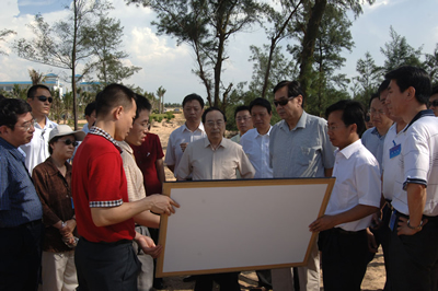 蒋正华在考察中指出,在经济全球化、区域化的大背景下,海洋经济在世界经济发展中具有战略性的重要意义。在海洋资源的开发利用中,我们应遵循科学开发、综合开发、开放开发的原则,根据各区域的特点和海洋功能区划来制定海洋经济战略规划。要特别注意水产品、海洋油气资源的可持续利用及环境保护问题,早日把海南建设成我国南海一颗环境美好、资源丰富、经济强盛的璀璨明珠。
