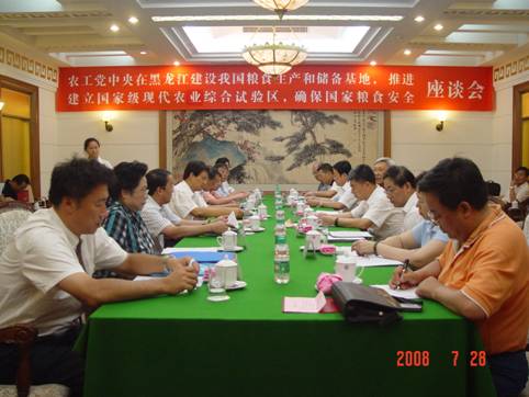 参加座谈会的还有,国家发改委农经司副司长肖庆华、农业部种植业管理司副巡视员周普国,全国政协委员、农工党中央组织部部长肖燕军,全国人大代表、农工党中央科技委主任、中科院生态环境中心研究员王如松,农工党中央参政议政部副部长隋路,农工党中央科技委副主任、农工党黑龙江省委副主委、黑龙江省科学院副院长郭春景,黑龙江省政协副主席刘海生,省农垦总局党委书记、局长隋凤富,省农委副主任李文华,省粮食局副局长齐瑶,省发改委副巡视员张常荣,省政协农业委员会主任邹滨年,省农科院总农艺师矫江,农工党黑龙江省委会副主委、哈尔滨市政协副主席、农工党哈尔滨市委会主委纪效民,农工党黑龙江省委会副主委、黑河学院副院长宋立权。