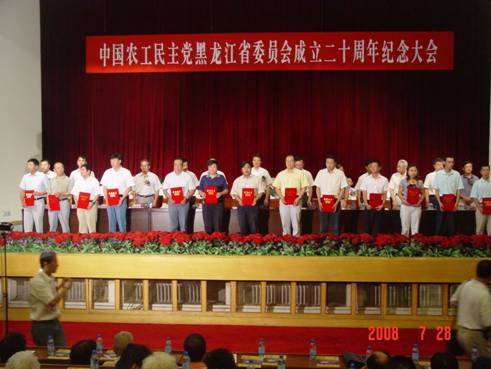 7月28日上午,中国农工民主党黑龙江省委成立20周年纪念大会在哈尔滨和平邨宾馆隆重召开。全国政协副主席、农工党中央常务副主席陈宗兴到会祝贺并致辞。中共黑龙江省委常委、组织部长龙新南代表中共黑龙江省委、省政府到会祝贺并致贺辞。黑龙江省政协副主席、民革黑龙江省委主委何小平代表黑龙江省民革、民盟、民建、民进、九三学社、工商联宣读贺词。农工党中央副主席、农工党黑龙江省委主委陈述涛发言。黑龙江省领导程幼东、王利民、陶夏新,农工党黑龙江省原主委王廼谦等出席会议。农工党省委会副主委刘长青、纪效民、马立群、郭春景、宋立权、林志国、高翔,省政府参事、省委会原副主委钟震宇出席会议,大会由刘长青主持,来自全省的农工党员代表及受表彰的优秀集体和优秀个人代表300余人参加会议。