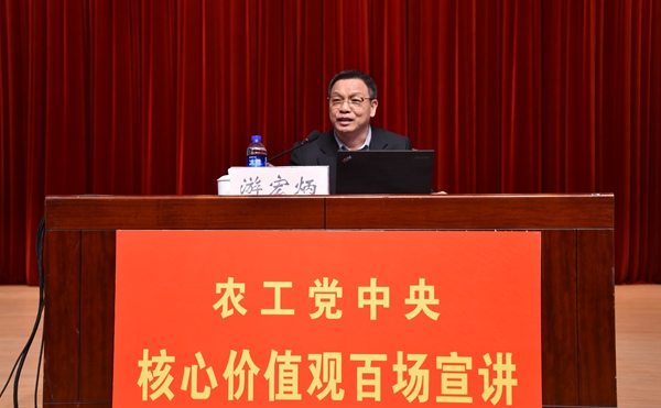 2016年2月20日,农工党中央“培育和践行社会主义核心价值观百场宣讲”走进河南郑州,开展了试点宣讲。河南省政协副主席、农工党中央常委、河南省委会主委高体健出席宣讲会并致辞。农工党中央研究室主任游宏炳、农工党钦州市委会副主委邓秋晓、农工党广东省委会常委秦鉴分别作了“爱国民主——农工党的历史选择与优良传统”、“和谐友善——培育好家风”、“敬业诚信——做一名合格的农工党员”专题宣讲,受到了与会党员的热烈欢迎和好评。