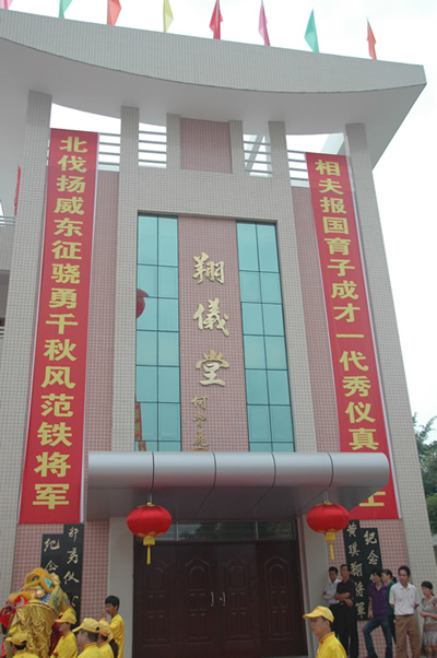 昨日上午,梅县水车镇梅江中学内锣鼓喧天、热闹非凡,投资160多万元、总建筑面积1680平方米、楼高三层的黄琪翔、郭秀仪纪念大楼正式落成剪彩。黄琪翔将军后裔黄平女士代表黄琪翔家属将纪念大楼的捐赠证书递交给水车镇梅江中学,同时,梅县县委、县政府向黄平女士颁发荣誉证书。