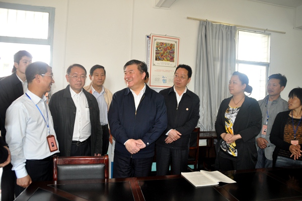 2014年8月12日至14日,全国人大常委会副委员长、农工党中央主席陈竺(左五)在大方调研,图为在毕节同心农工中等职业技术学校调研